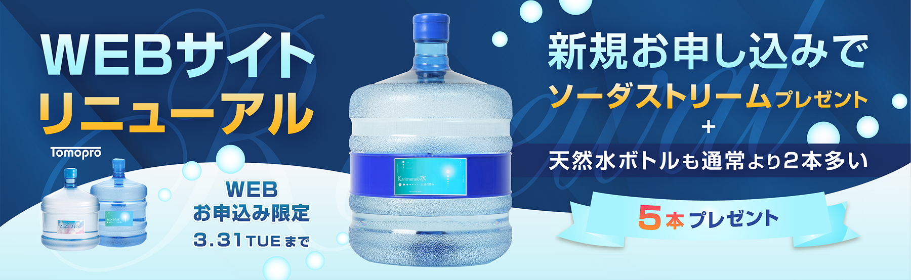 天然水ボトルも通常より2本多い5本プレゼント!
